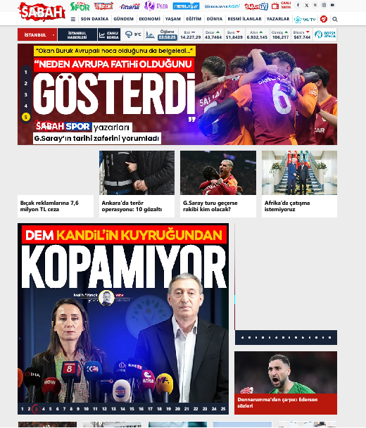 DEM Parti’yi süreç boyunca birçok kez hedef alan iktidar medyasından bir diğer gazete Sabah da, DEM Parti’yi bu kez Irak üzerinden hedef aldı. Dışişleri Bakanı Hakan Fidan’ın Irak’la ilgili sözlerine tepki gösteren DEM Parti’yi Sabah, “DEM Kandil’in kuyruğundan kopamıyor” manşetiyle hedef aldı.
