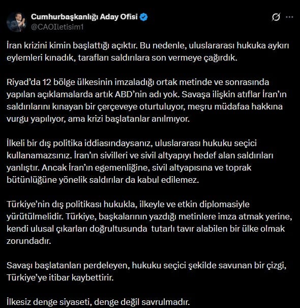 İktidarın imza attığı İran bildirisine İmamoğlu ndan sert tepki: İlkesiz denge siyaseti, denge değil savrulmadır