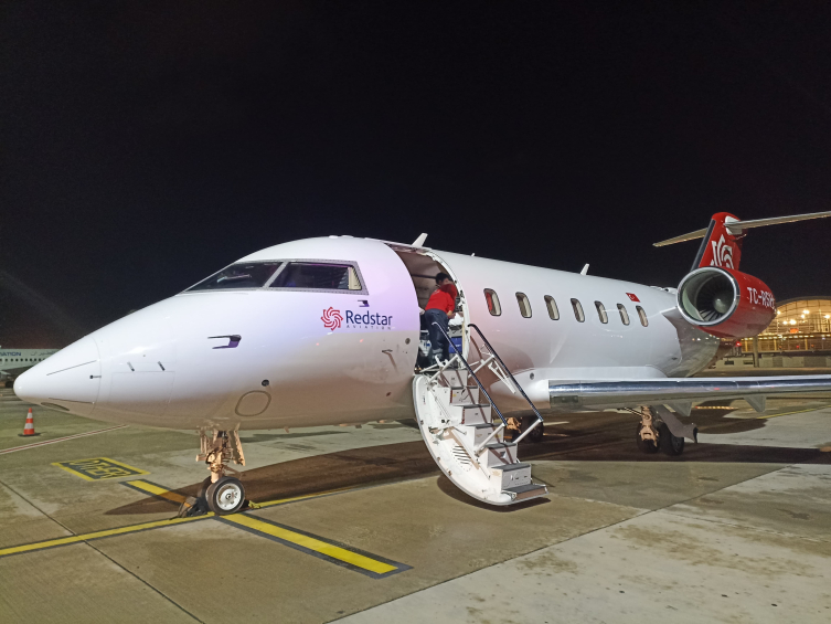 Tedavi için Türkiye’ye gitmek üzere ambulans uçağa bindirilen aile, Adana’ya hareket etti.