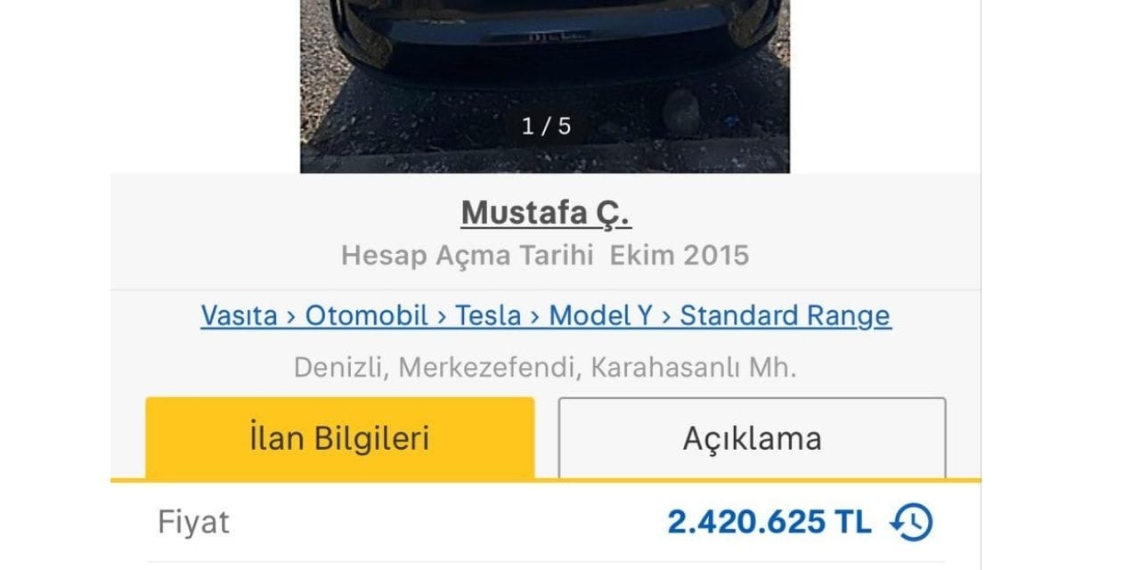 BAKANLIK SELAMI ALDI, CEZAYI YAZDISattığı Tesla aracın fiyatını ilana 2.420.625 TL olarak giren ancak özelde 2.700.000 TL isteyen satıcı: