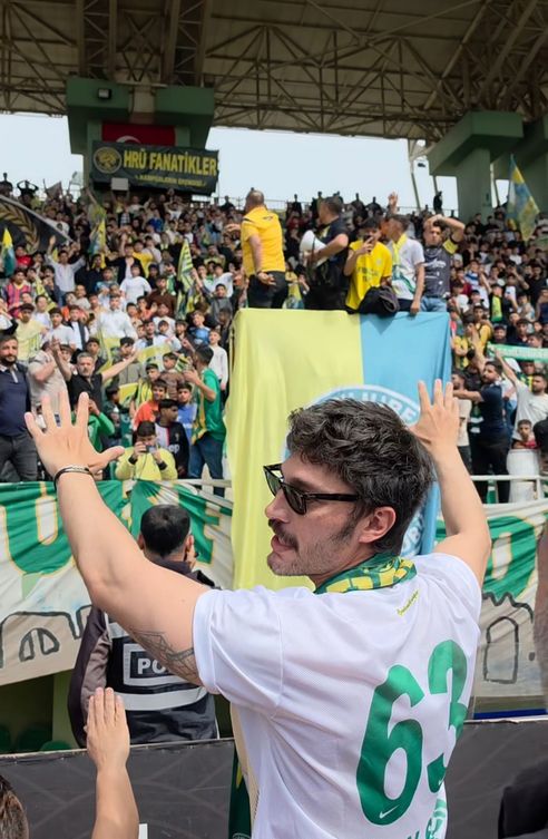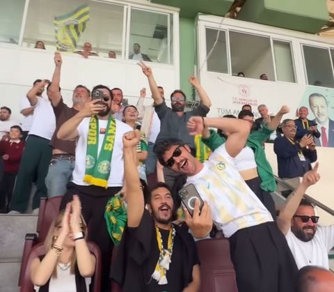 Tribünlerin ilgisini karşılıksız bırakmayan Şen, taraftarlarla birlikte tezahüratlara katılarak adeta amigoluk yaptı.