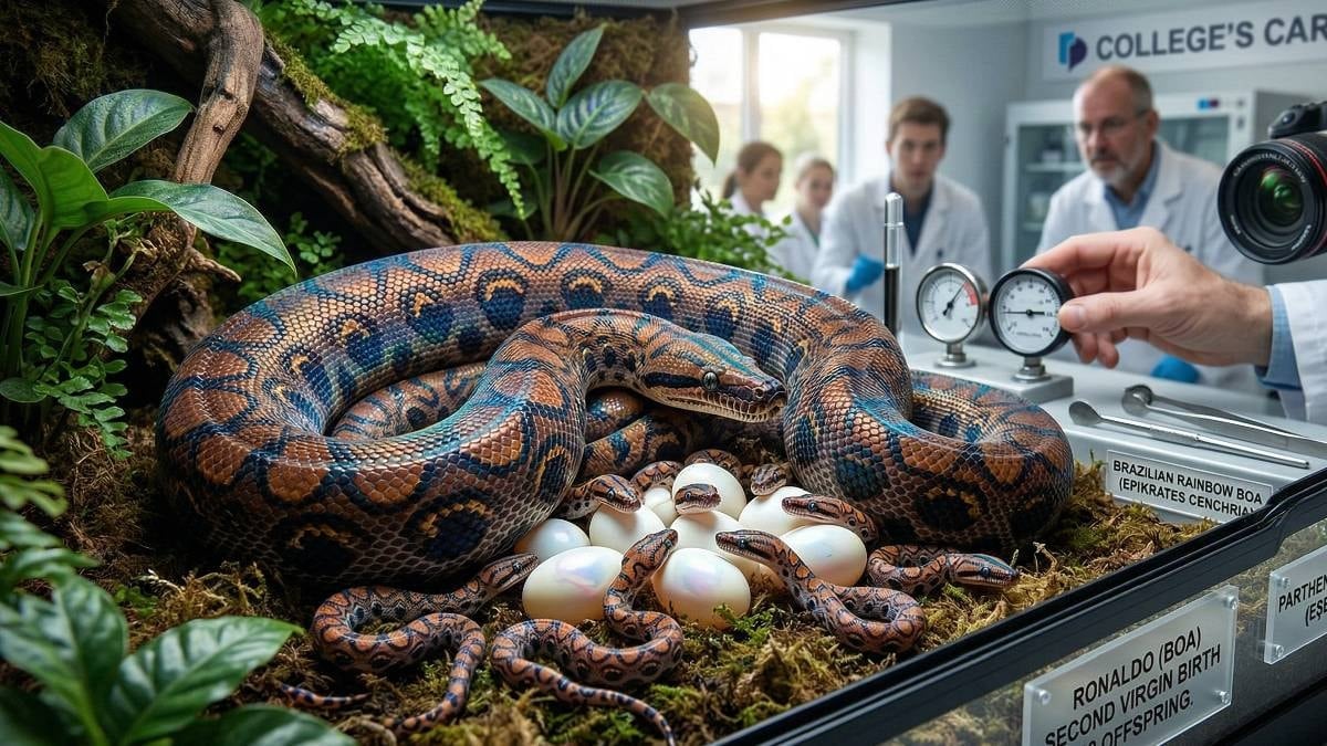 Daha önce Kraliyet Hayvanlara Karşı Zulmü Önleme Derneği (RSPCA) bünyesinde bulunan ve ardından üniversiteye nakledilen gökkuşağı boası, yaşamı boyunca hiçbir erkek yılanla aynı ortamda bulunmadı. Uzmanlar, bu vakanın genetik ve biyolojik açıdan incelenmesinin, sürüngenlerdeki üreme yeteneklerine dair yeni veriler sunabileceğini öne sürüyor. 12 yavrunun sağlık durumlarının takip edildiği bildirildi.