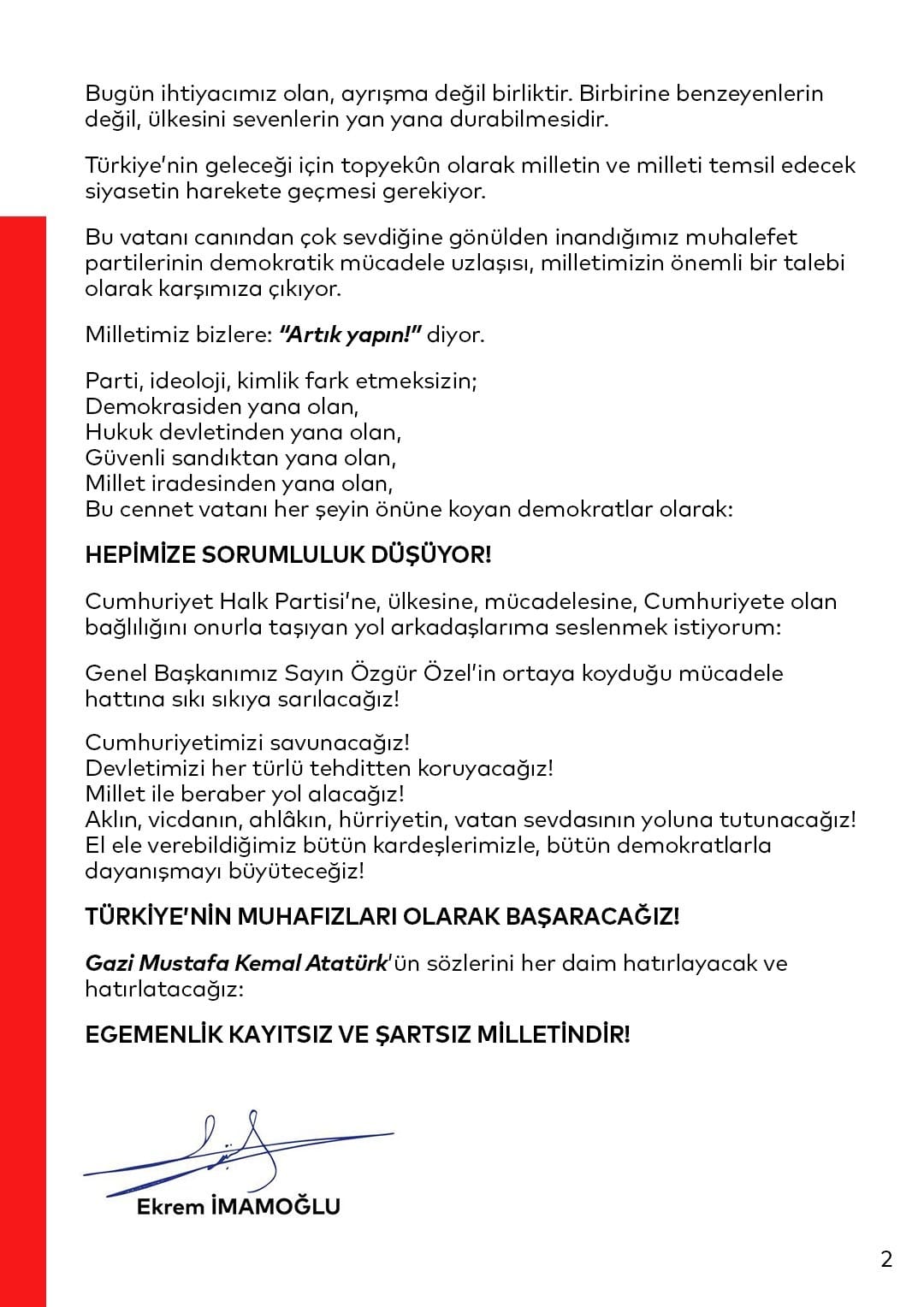 İmamoğlu ndan 2 sayfalık sert manifesto