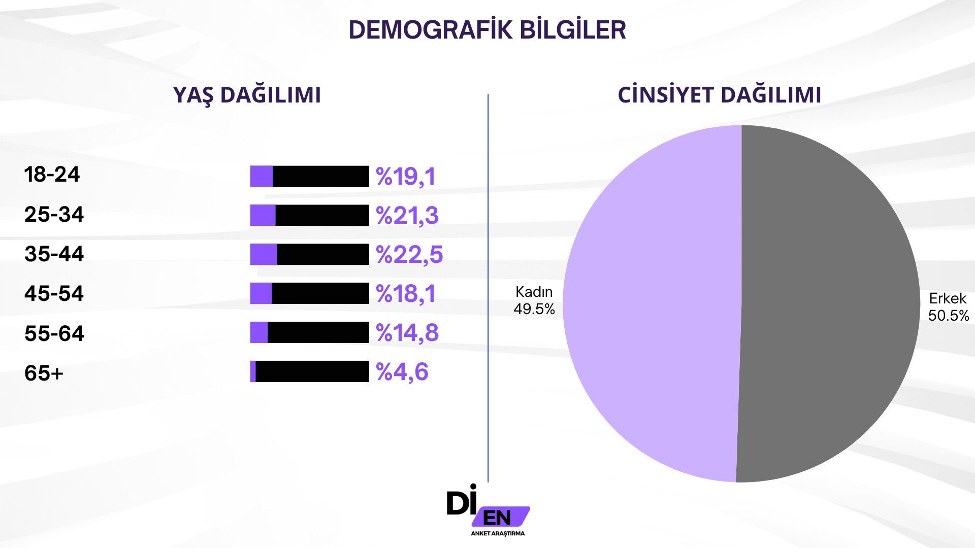 ANKETİN DEMOGRAFİK BİLGİLERİAraştırma, yaş, cinsiyet, eğitim ve gelir seviyesi kotaları uygulanarak gerçekleştirildi. Katılımcıların demografik dağılımı ise şu şekilde: