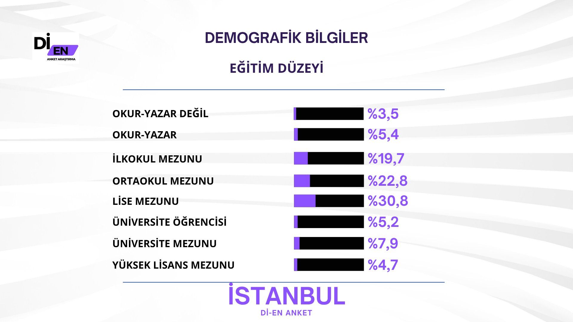 Anket sonuçlarına göre, "Özgür Özel'in 'İstanbul seçimlerini yenileyelim' çağrısı üzerine, bugün İstanbul Büyükşehir Belediyesi'nde seçim yapılacak olsa oyunuz kime olur?" sorusuna katılımcıların yüzde 51,0'ı "Ekrem İmamoğlu" yanıtını verdi. AKP adayı ise yüzde 34,0 oranında destek buldu. Diğer adaylara oy vereceğini belirtenlerin oranı ise yüzde 15,0 olarak ölçüldü.