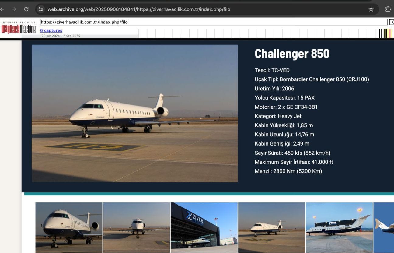 Uçağın sahibi olan Ziver Holding bünyesindeki Ziver Air’in internet sitesine erişim, olayın kamuoyuna yansımasının ardından kapatıldı.