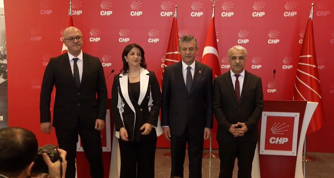 DEM Parti İmralı heyeti CHP Genel Başkanı Özgür Özel’i ziyaret etti. ‘Terörsüz Türkiye’ sürecinde kritik bir önem taşıyan görüşmenin ardından basın toplantısı düzenlendi.