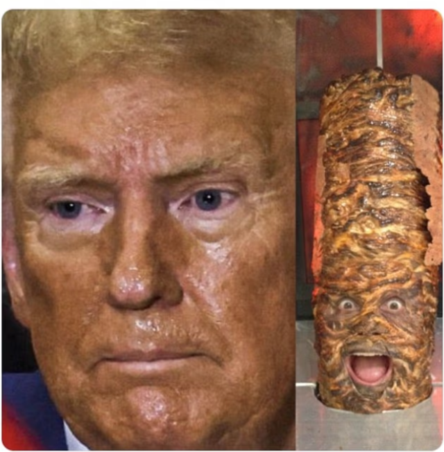 Joly paylaşımlarından birinde Trump fotoğrafıyla yan yana koyduğu tavuk döner fotoğrafının altına;"Trump'ın bana kimi hatırlattığını hatırlamaya çalışıyordum. Sonra kepab yediğim zamanı hatırladım" notu düşmüştü.