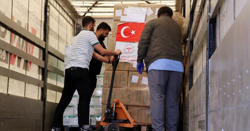 Van İl Sağlık Müdürlüğü koordinesinde hazırlanan tıbbi sarf malzemeleri, ilaç, serum, cihaz, oksijen tüpleri ve sedyeler kolilere konularak TIR’lara yüklendi. Yardım malzemelerini taşıyan 6 TIR, Ağrı’nın Doğubayazıt ilçesindeki Gürbulak Sınır Kapısı üzerinden İran’a gitmek üzere yola çıktı.