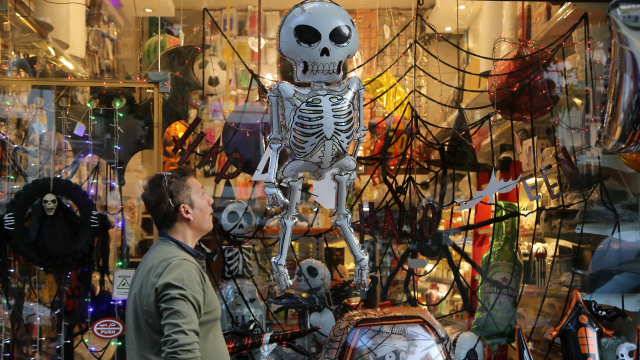 Kentin çeşitli bölgelerinde mağaza vitrinleri, iskeletler, bal kabakları, örümcek ağları ve karanlık temalı süslemelerle donatıldı.