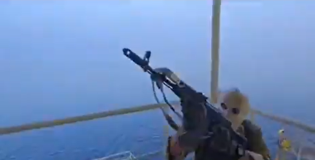BOTLA YAKLAŞIP KOCA GEMİYİ ELE GEÇİRDİLERGörüntülerde, DMO güçlerinin botlarla gemilere yaklaştığı ve silahlı DMO askerlerinin gemilerin kontrolünü ele geçirdiği görüldü.