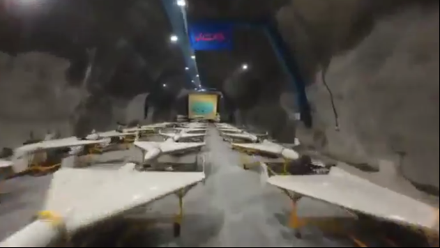 Yayınlanan görüntülerde, tünellerle örülmüş dev bir alanda dizili roketler ve Shahed dronları görülüyor. Tesisin içinde, geçtiğimiz Cumartesi günü ABD-İsrail ortak operasyonunda yaşamını yitiren Ayetullah Ali Hamaney'in portresi yer alıyor. İran bayrakları tavanlardan sarkarken, dron fırlatıcılarını taşıyan araçlar da görüntülere yansıyor.