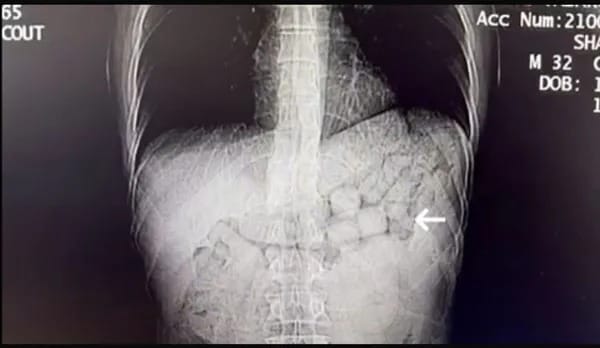MİDE VE BAĞIRSAKLARINDAN 807 GRAM METAMFETAMİN ÇIKTIŞüphelilerin, tomografi görüntülerinde, mide ve bağırsaklarıda yabancı cisimler bulundu. Yaklaşık 3 gün süren kontrollerin ardından yabancı uyruklu uyuşturucu taciri 2 kişinin mide ve bağırsağından 91 kapsül halinde 807,15 gram Metamfetamin maddesi çıktı.