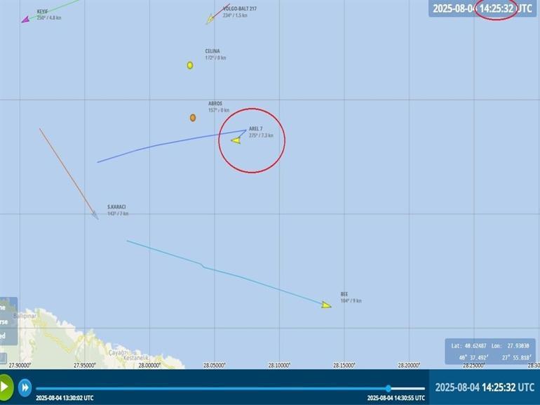 Halit Yukay'ın teknesine çarptığı değerlendirilen 'Arel 7' isimli kuru yük gemisinin İzmit Limanı'na geldiği anların görüntüsü de ortaya çıktı. Güvenlik kamerası görüntülerinde; 5 Ağustos'ta saat 04.00 sıralarında, limana yanaşan 'Arel 7'nin kaptanı Cemal Tokatlıoğlu ile yanındaki mürettebatın saat 04.17'de gemiden inip, baş kısmına gelerek gemiye baktığı, ardından iskele baş tarafta durup tekrar gemiye baktığı görüldü. Önünde belirgin sürtme izleri olduğu saptanan geminin fotoğraflarıyla birlikte bu görüntüler de soruşturma dosyasına girdi.