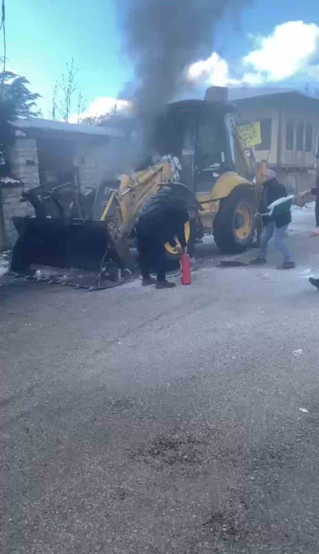 İhbar üzerine olay yerine sevk edilen itfaiye ekipleri, kısa sürede müdahale ederek yangını kontrol altına aldı. Yangın nedeniyle iş makinesinde maddi hasar oluştu.