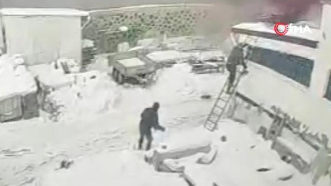 İş yerinde çıkan yangın öncesi meydana gelen patlama güvenlik kamerasında