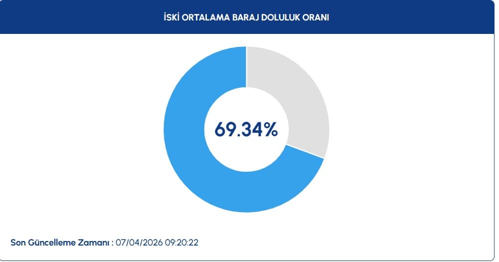 İstanbul barajları, Aralık ayındaki dip noktasından bu yana sürdürdüğü yükselişle yaz öncesi kritik eşiğin tam kıyısına geldi. İstanbul Su ve Kanalizasyon İdaresi’nin (İSKİ) verilerine göre 7 Nisan 2026 sabahı itibarıyla genel doluluk oranı yüzde 69,34 olarak ölçüldü. Bu oran, uzmanların yaz için belirlediği yüzde 70 hedefinin henüz 0,66 puan gerisinde.