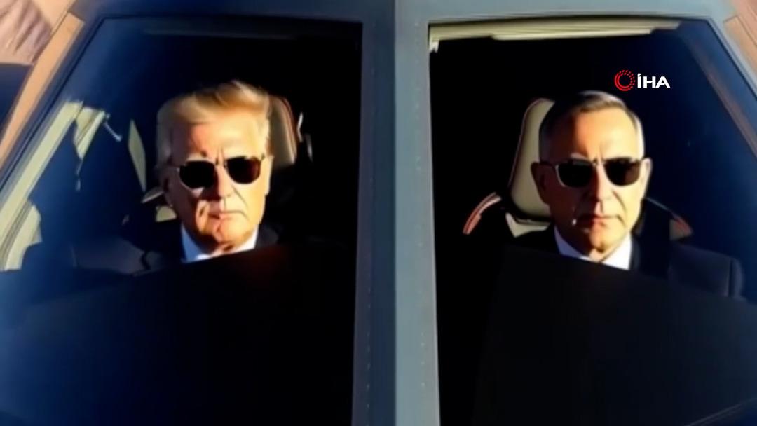Videoda uçağın kokpitinde ABD Başkanı Donald Trump, yardımcı pilot koltuğunda ise İsrail Başbakanı Binyamin Netanyahu yer aldı. 6 saniyelik videoya, "Zafer turumuzda, 6 ay" notu düşüldü.