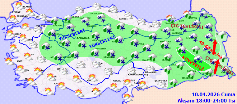 Öte yandan, Doğu Karadeniz'in iç kesimleri ile Doğu Anadolu'nun doğusunda yüksek kar örtüsüne sahip eğimli yamaçlarda çığ ve kar erimesi tehlikesinin kritik seviyede olduğu vurgulandı. Vatandaşların ve yetkililerin buzlanma ve don olaylarına karşı tedbirli olmaları gerektiği hatırlatıldı.
