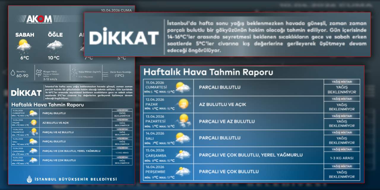 Hava durumunda beklenen iniş çıkışlar yaşanırken sıcaklıklar ve yağış düzensizlikleri görüldü. İstanbul da değişken hava durumundan nasibini alırken iç açıcı tahminler İBB'den geldi. İBB AKOM, haftalık tahminlerinde hem sıcaklık artışını hem de güneşin yüzünü gösterdiği günleri duyurdu.