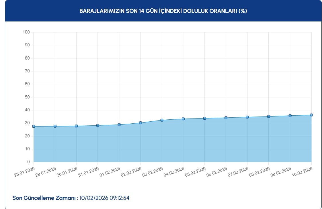 10 ŞUBAT 2026 ŞEHİRLERE GÖRE BARAJ DOLULUK ORANLARI