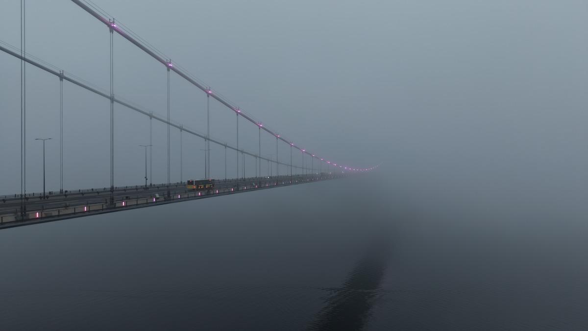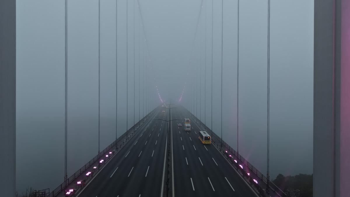 Sis tabakasıyla kaplanan Fatih Sultan Mehmet Köprüsü ve çevresi havadan görüntülendi.