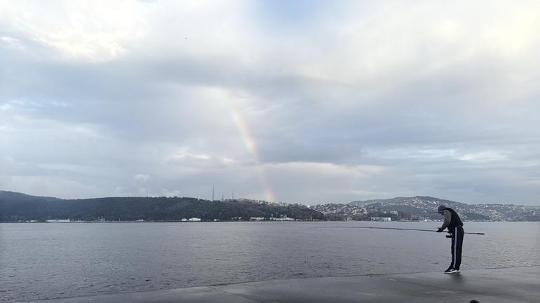 İstanbul'da aralıklarla yağan yağmurun ardından İstanbul Boğazı'nda gökkuşağı görüldü. Her iki yakada görünen gökkuşağı kartpostallık görüntü oluşturdu.