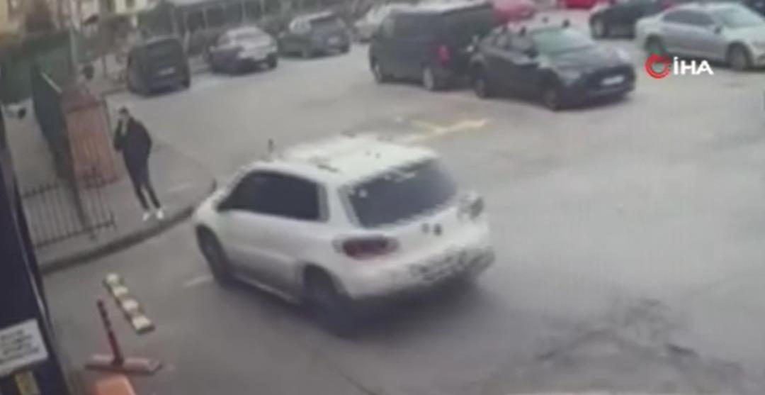 İlginç kazanın güvenlik kamera görüntüleri de ortaya çıktı. Görüntülerde otoparktan çıkan kadın sürücünün kullandığı araç, birden hızlanarak diğer araçlara çarpıyor. Bu sırada bir kişi aracın altında kalmaktan son anda kurtuluyor. Demir bariyerleri aşan araç boşluk alana düşüyor.