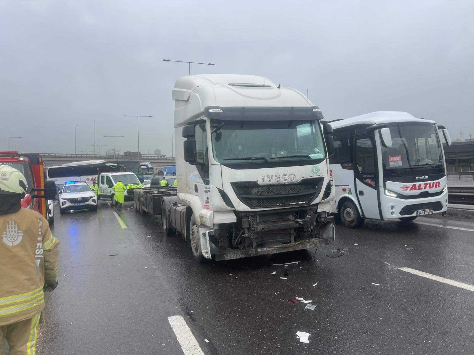 Kuzey Marmara Otoyolu'nda TIR, otomobile arkadan çarptı. Olay yerine polis, sağlık ve itfaiye ekipleri sevk edildi. Kaza nedeniyle 2 şerit trafiğe kapatıldı, trafik yoğunluğu oluştu.