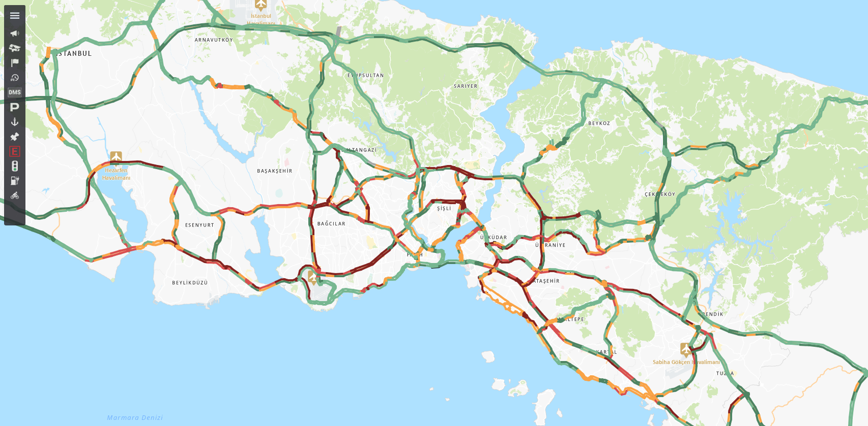 Karaköy-Beşiktaş sahil yolu ile Barbaros Bulvarı'nda trafik yavaş akarken, D-100 kara yolunun Cevizlibağ mevkisinde de yollar çift taraflı olarak ağır ilerliyor.