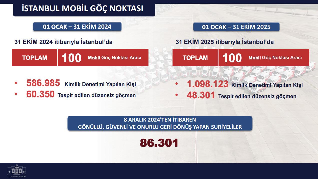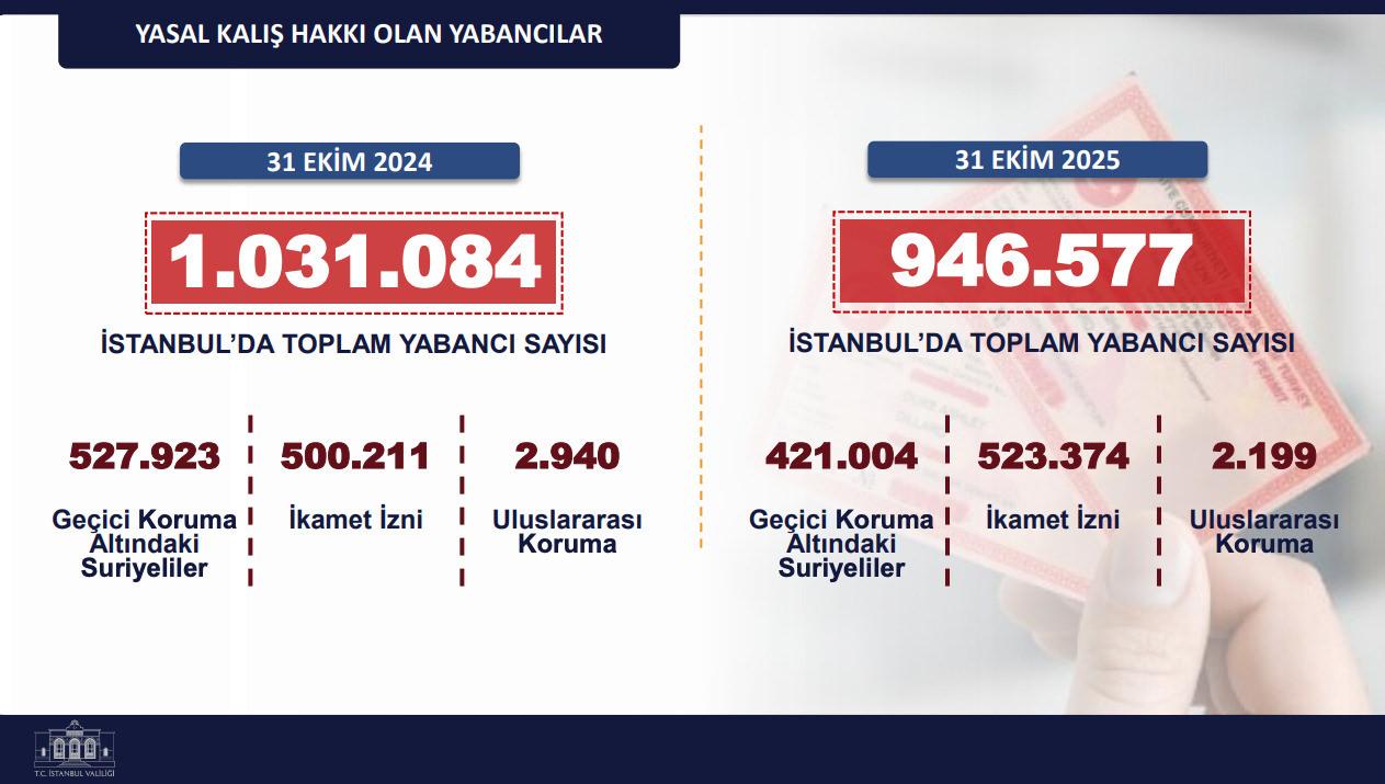 48 bin 301 düzensiz göçmen tespit edildi. İstanbul’daki toplam yabancı sayısı 946 bin 577 olarak açıklandı.