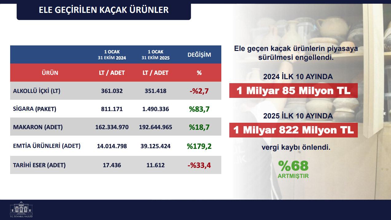 Piyasaya sürülmesi engellenen kaçak ürünlerin toplam değeri 1 milyar 85 milyon TL oldu.