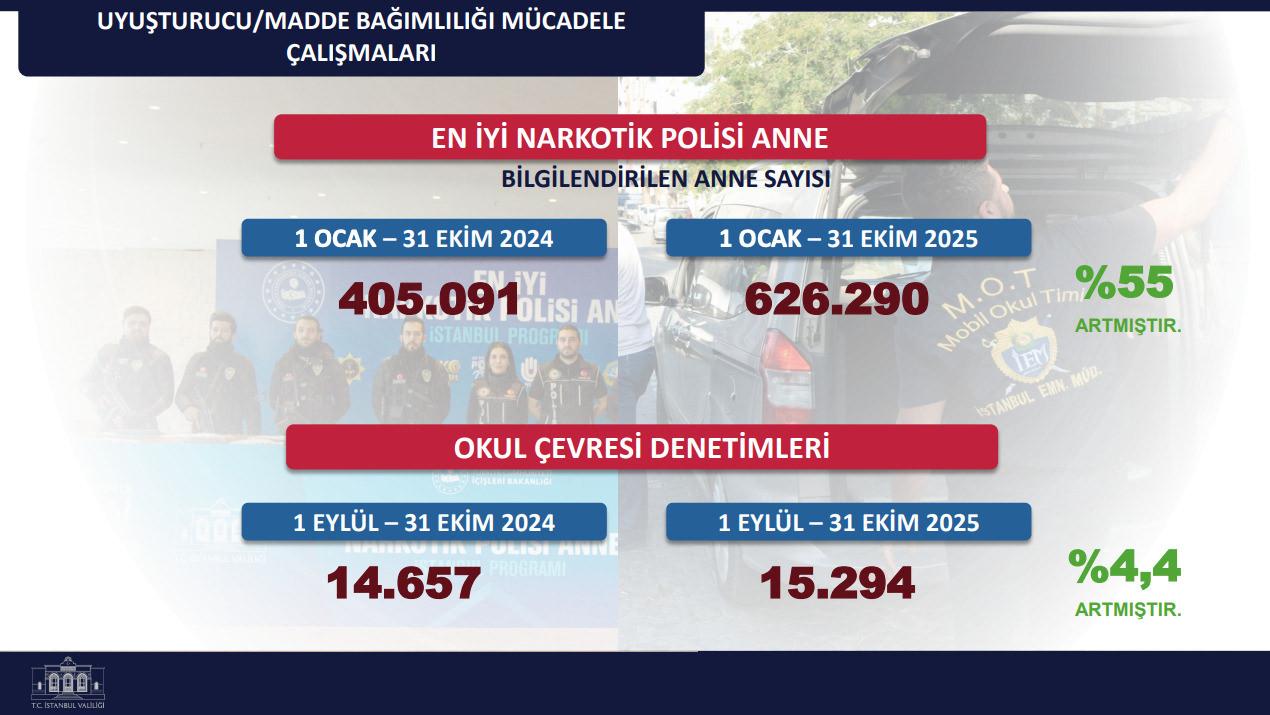“En İyi Narkotik Polisi: Anne” projesi kapsamında bilgilendirilen anne sayısı yüzde 55 artarak 626 bin 290’a çıktı.