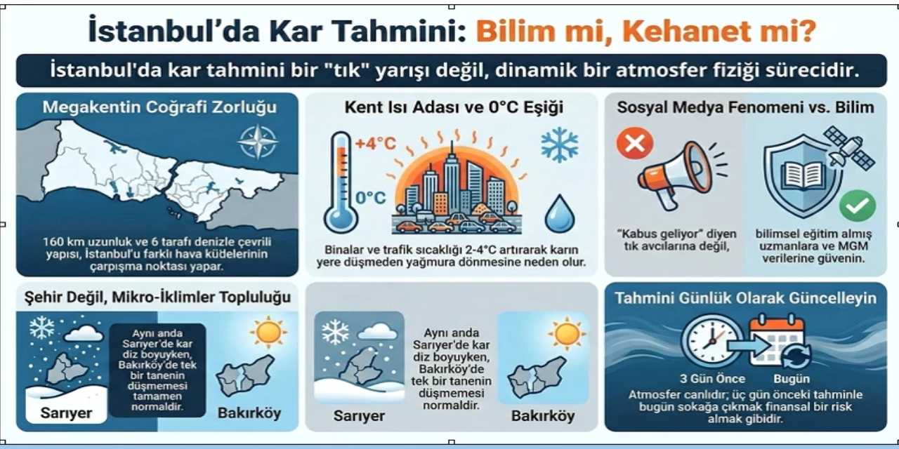 “Milyonlarca araç, bina, asfalt ve beton şehrin sıcaklığını çevre kırsala göre 2-4 derece yukarı çeker. Sarıyer'de kar tutarken Şişli'de yağmura dönmesinin sebebi budur.”