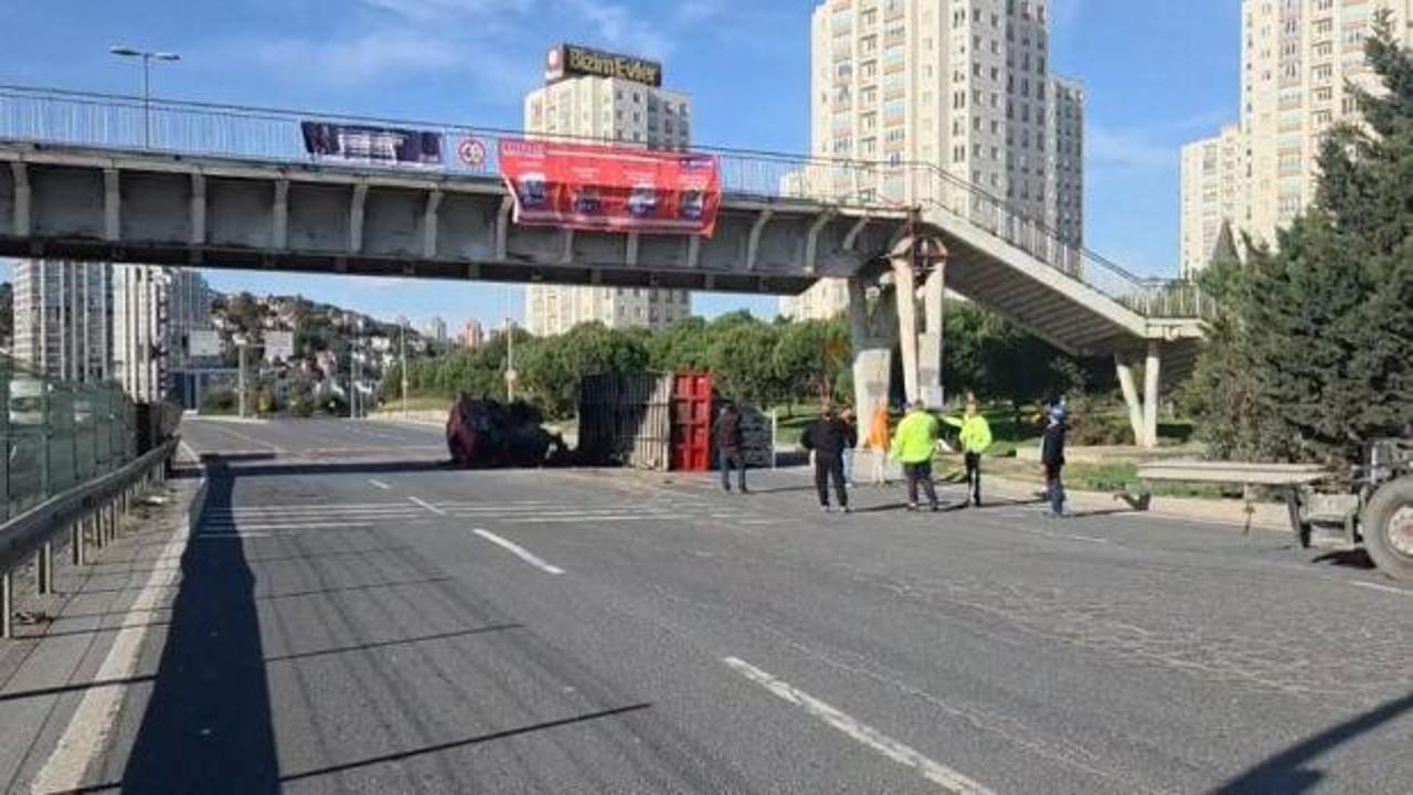 İstanbul'da TIR üst geçide çarptı: Yol trafiğe kapatıldı!