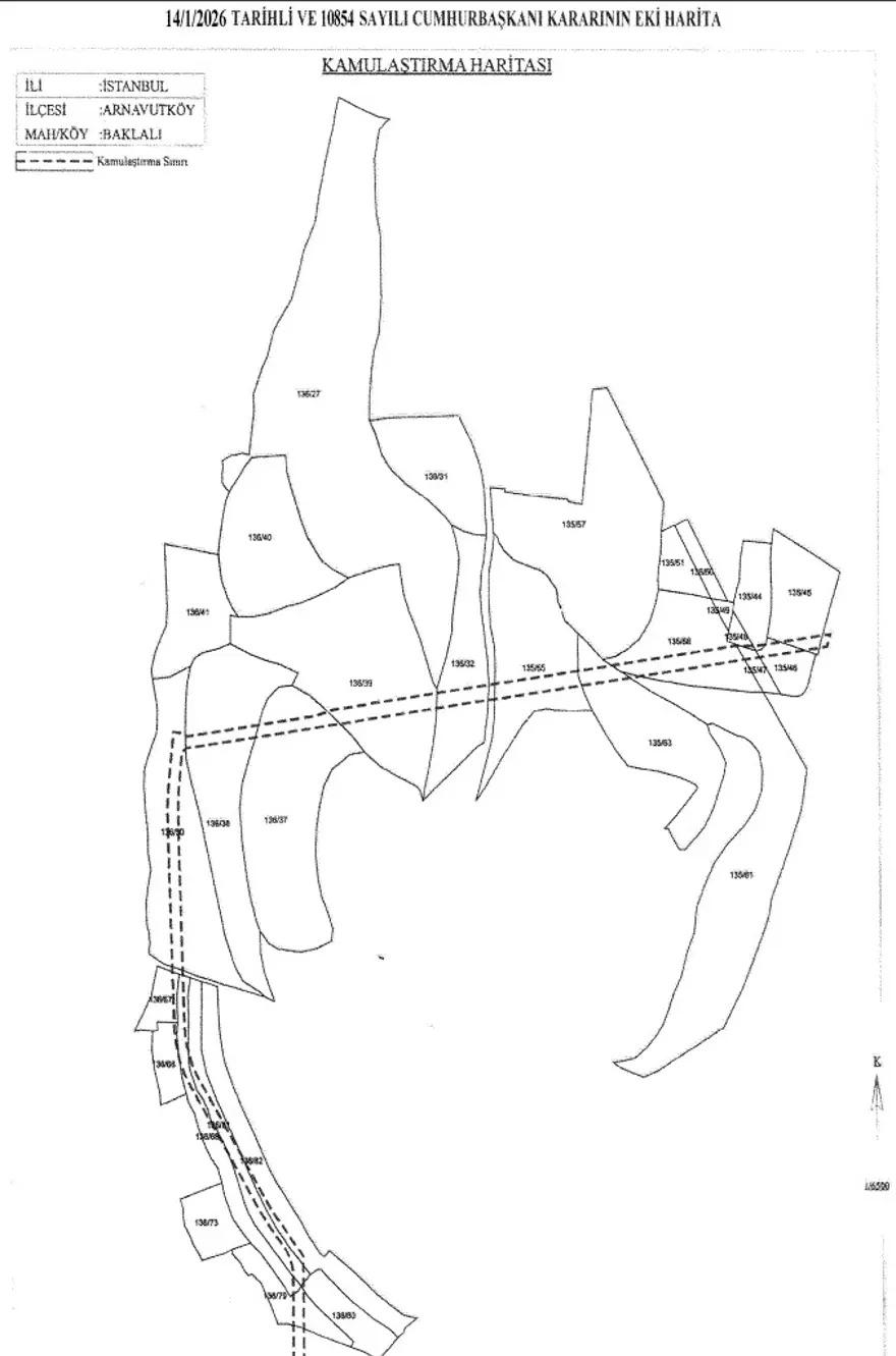 'İstanbul İli, Arnavutköy İlçesi, Baklalı Mahallesi sınırları içerisinde bulunan ve ekli haritada sınırları gösterilen alanda yer alan özel mülkiyete konu taşınmazların, “100.000 Sosyal Konut Projesi” kapsamında söz konusu mahallede yapımı gerçekleştirilen konutlara doğal gaz arzının sağlanması amacıyla Toplu Konut İdaresi Başkanlığı tarafından acele kamulaştırılmasına, 2942 sayılı Kamulaştırma Kanununun 27 nci maddesi gereğince karar verilmiştir.'