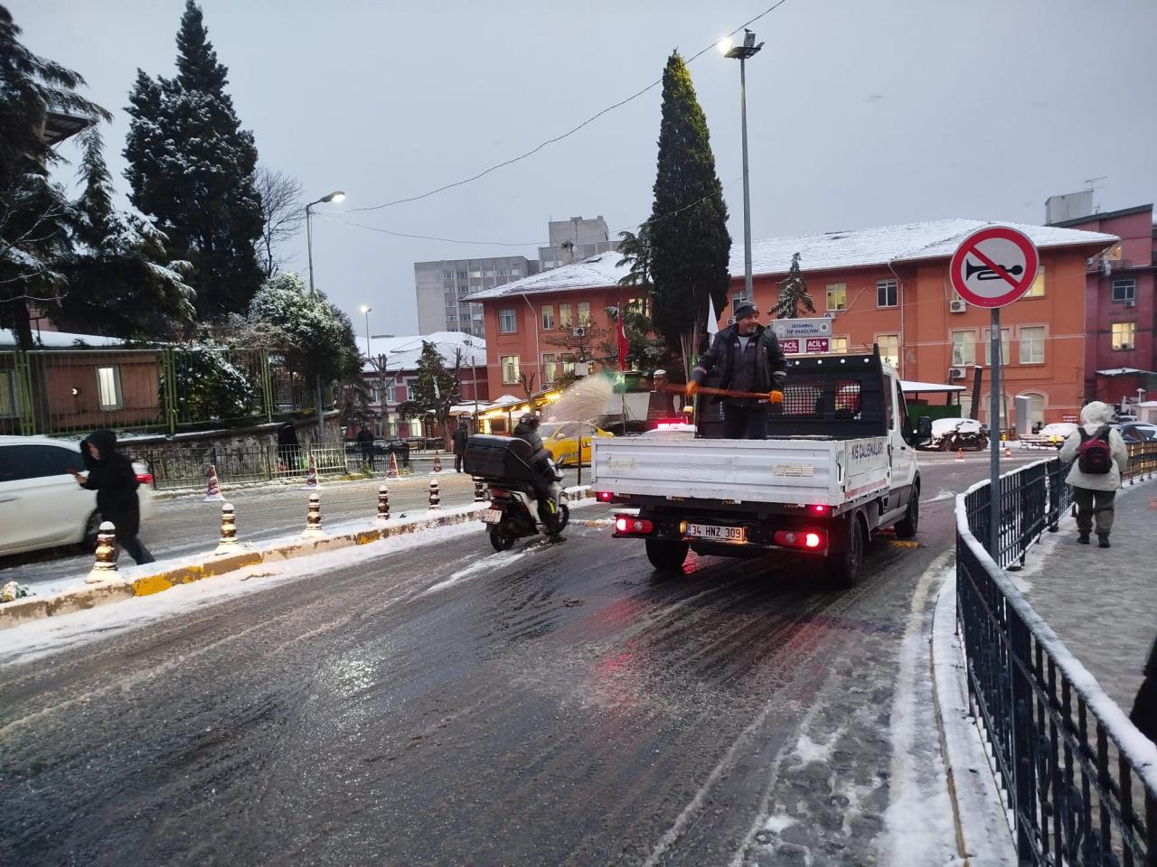 Cadde ve sokakların yanı sıra bağlantı yollarında tuzlama ve küreme çalışmaları sürerken, yaya yoğunluğunun yüksek olduğu bölgelerde kaldırım ve geçiş güzergâhlarında da ekipler görev yapıyor.