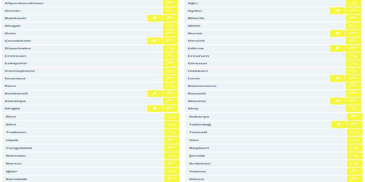 48 ilde şiddetli rüzgar ve fırtına beklenirken sarı kodla alarm verildi. O iller şu şekilde: