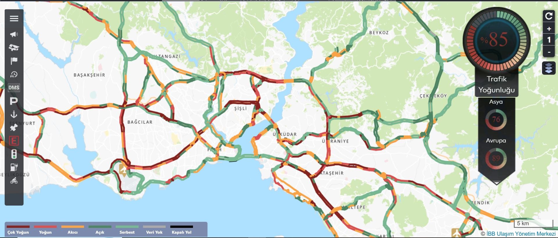 İBB verilerine göre kent genelinde yoğunluk yüzde 85 olarak ölçülürken, bu oran Avrupa Yakası’nda yüzde 89, Anadolu Yakası’nda ise yüzde 76 seviyelerine çıktı.