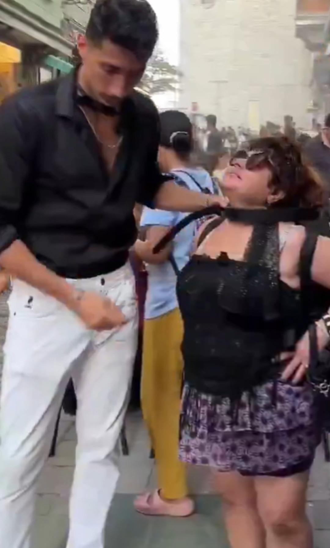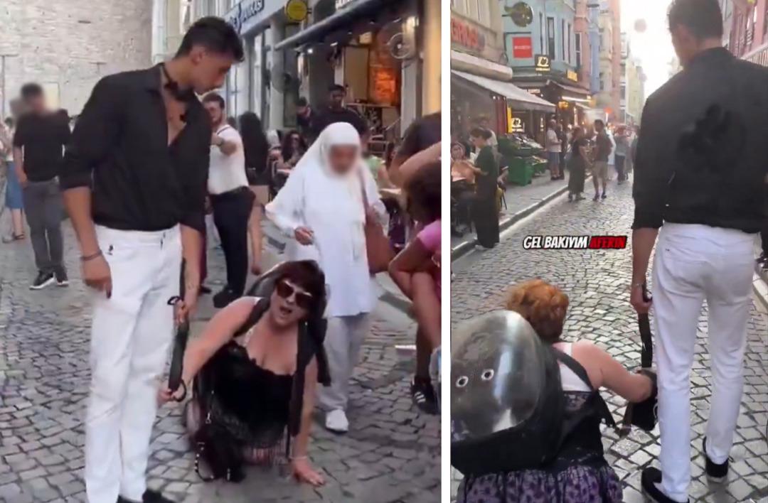 İstanbul un göbeğinde şaşkınlık yaratan görüntüler! Kadına tasma takıp sokaklarda gezdirdi: Gözaltına alındılar