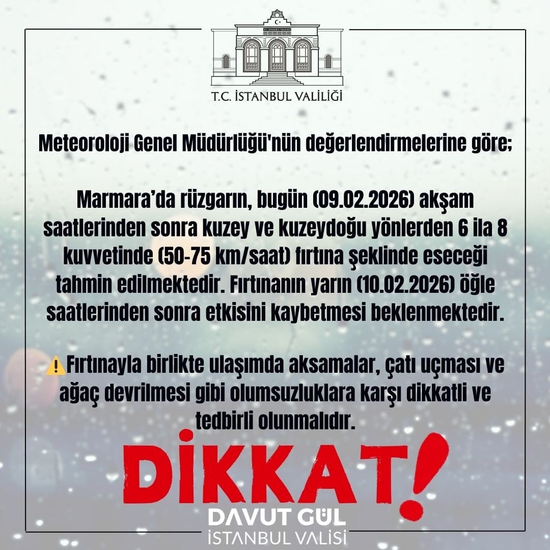 Bu konudaki diğer haberler:İstanbul Valiliği nden fırtına uyarısı
