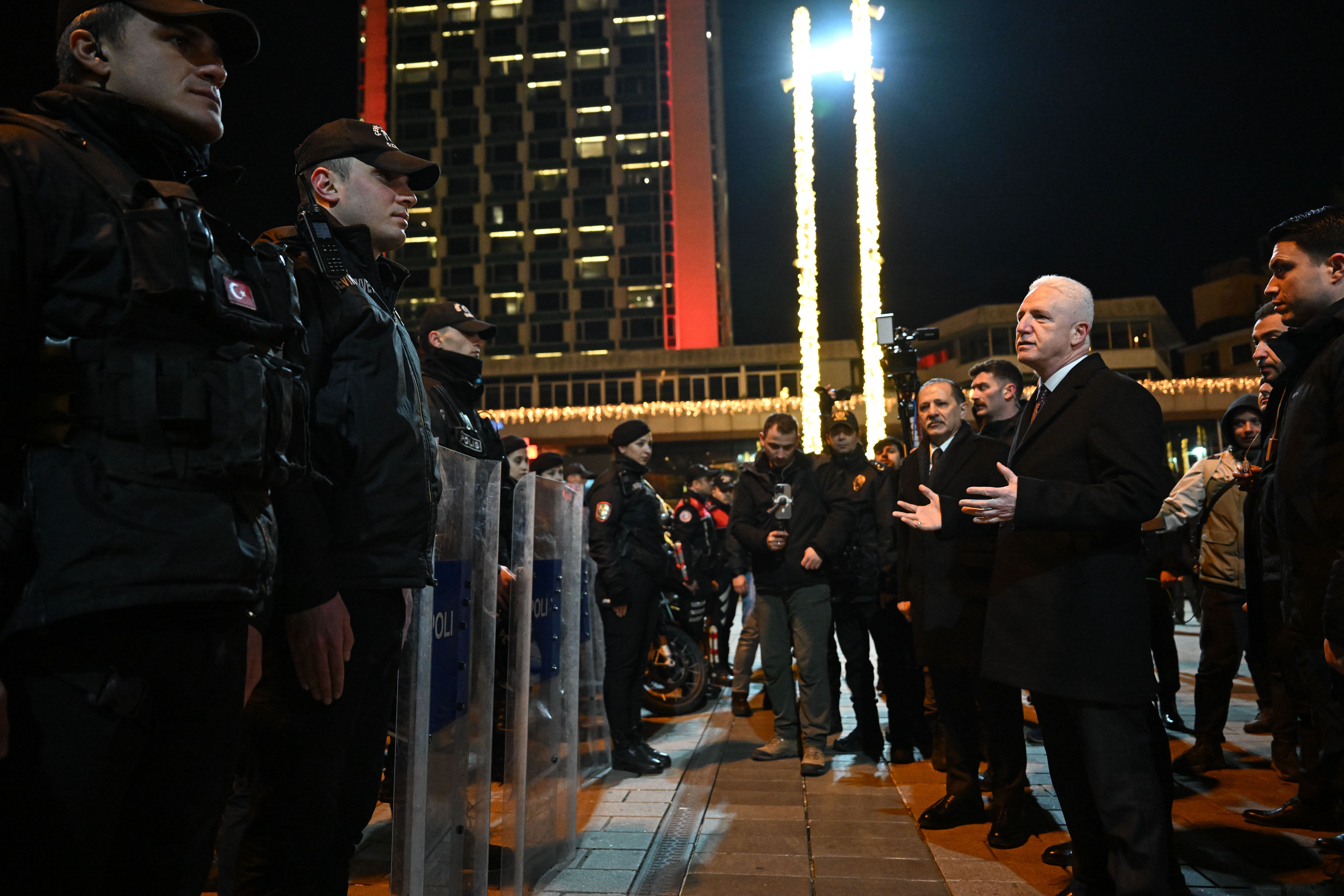 "İçişleri Bakanlığı'mızın koordinasyonunda bütün illerde yapıldığı gibi İstanbul'umuzda da her kurum kendi açısından tedbirlerini aldı ve almaya da devam ediyor. İstanbul'umuzda da başta emniyet olmak üzere jandarma, sahil güvenlik ve diğer kurumlarımızla birlikte hemşerilerimizin yeni yıla huzur içerisinde girebilmesi için bütün tedbirleri aldık. Şu anda da Taksim'deyiz. İstanbul bir dünya şehri. Dolayısıyla Taksim'e baktığınızda, İstiklal Caddesi'ne baktığınızda birçok ülkeden ziyaretçileri görebiliyoruz. Her birinin güven içerisinde istedikleri şekilde eğlenip yeni yılla girebilmesi için bu ortamın olduğunu görüyoruz. Emeği geçen arkadaşlarımıza teşekkür ediyorum. Kamu hizmeti gören 7/24 birçok alana gittik. Onların yeni yıllarını tebrik ettik En son 2026'nın ilk bebeğini Sağlık Bakanımız ile birlikte kucağımıza aldık ve şimdi de Taksim'deyiz. Emniyet Müdürümüzle, Kaymakamımızla buradaki tedbirlere bakacağız Yarın büyük gün, Gazze'ye destek mitingi var; dolayısıyla da emniyet personelimiz, diğer mesai arkadaşlarımız aynı hazırlıkları yarın da devam ettirecekler."