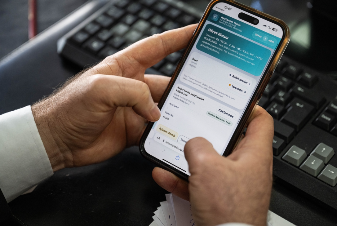 Temizlik, teknik sorun ya da memnuniyet bildirimleri kısa sürede iletilirken, lokasyon bilgisi otomatik olarak sisteme aktarılıyor ve talepler ilgili birimlere anında ulaştırılıyor.