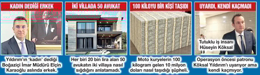 İş insanı Hüseyin Köksal’ın yanında şoför olarak çalışan Yıldırım, röportajda patronunun 19 Mart’tan önce soruşturmadan haberdar olduğunu ve kendisine yurt dışına çıkmasını teklif ettiğini ileri sürüyor. Şoförüne “yurt dışına çıkmalısın” diyen Köksal’ın kendisi yurt dışına çıkmıyor. Köksal, 23 Mart’tan beri yani tam 11 aydır hapiste.
