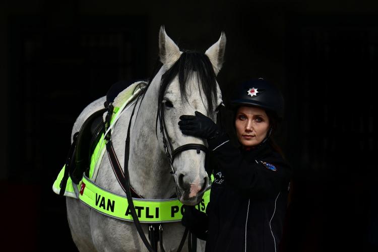 Van Emniyet Müdürlüğü Çevik Kuvvet Şubesine bağlı Atlı Polis Grup Amirliğinde görevli kadın süvariler, mesai arkadaşlarıyla güvenliğin sağlanmasına yardımcı oluyor. Kentte huzur ve güven ortamının devam etmesine yönelik faaliyetlerini sürdüren Van Emniyet Müdürlüğü, bu kapsamda 2 yıl önce Atlı Polis Grup Amirliğini kurdu. Grupta yer alan "kadın süvariler" Elanur Tuncer (fotoğrafta) ve Hilal Arslan, meslektaşları ile parklarda, Van Gölü sahili ile vatandaşların yoğun bulunduğu alanlarda görev yaparak vatandaşların kendini güvende hissetmesine katkı sunuyor.