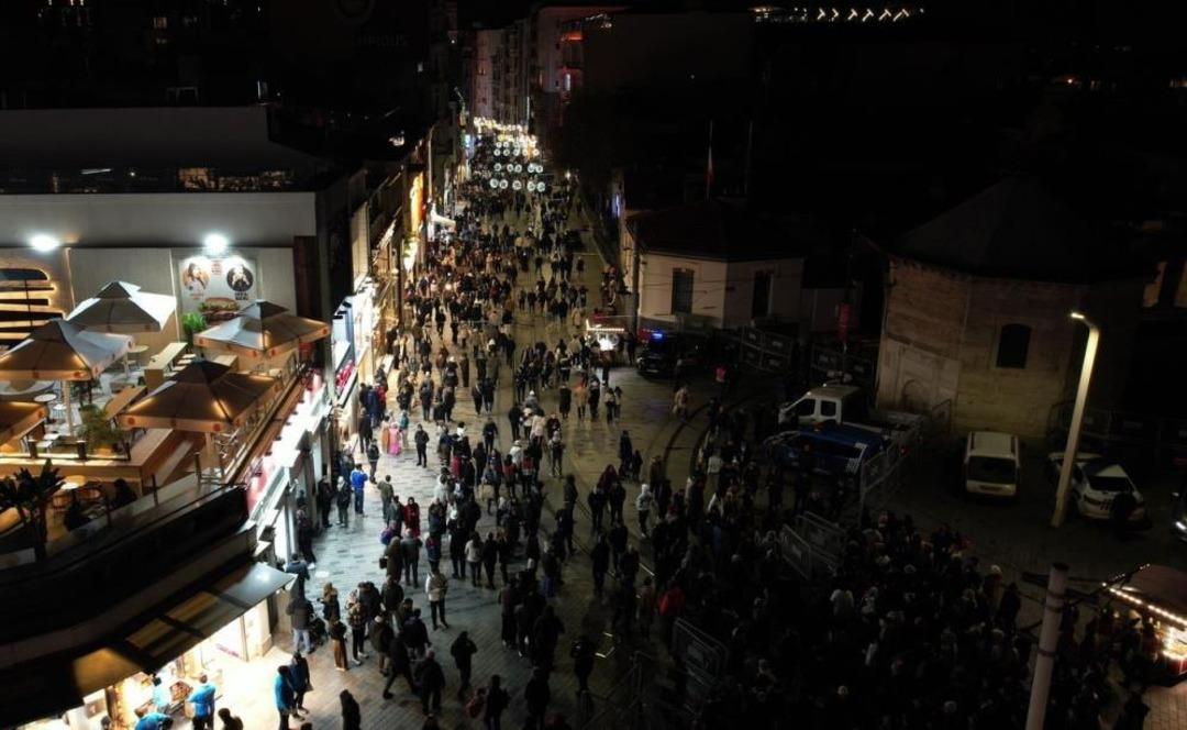 Ayrıca, Taksim İstiklal Caddesi'nde oluşan kalabalık dron ile görüntülendi. Öte yandan, İstanbul Emniyet Müdürlüğü'ne bağlı polis ve trafik ekipleri de vatandaşların güvenliği için mesaiye aralıksız devam ediyor.