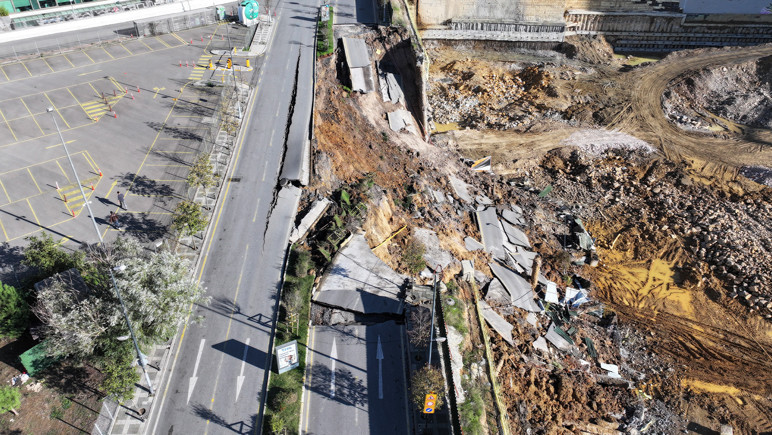 Ümraniye'de bir inşaatın istinat duvarının yıkılması sonucu yolda çökme meydana geldi.  İNŞAAT FİRMALARININ SORUMLULUĞU
