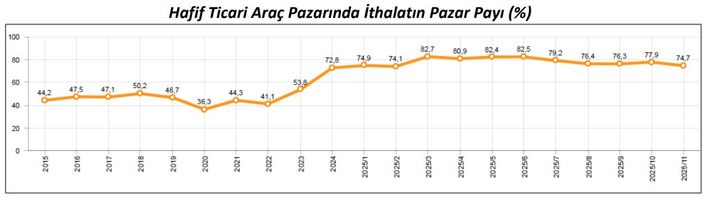 Ocak-Kasım döneminde hafif ticari araç pazarında da ithalatın payı ise yüzde 79 olarak gerçekleşti.