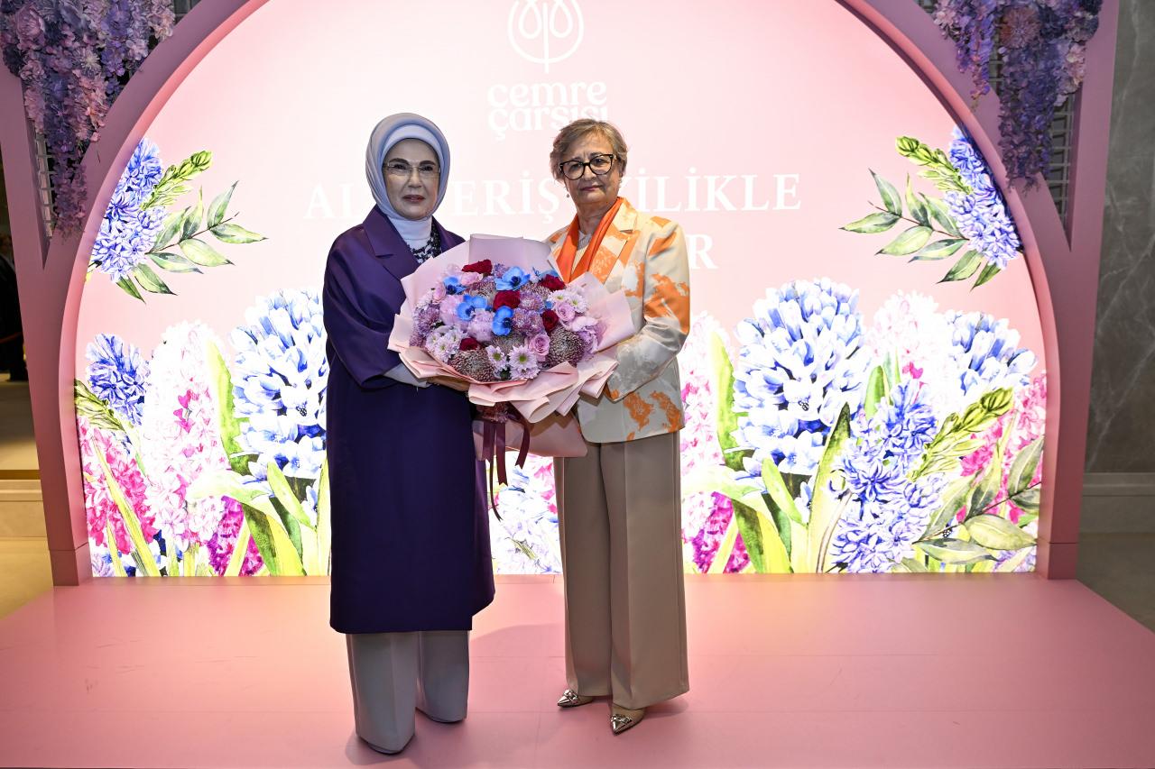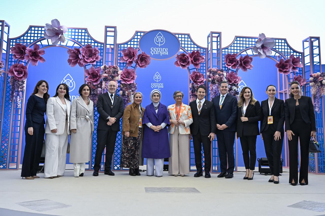 Emine Erdoğan, Toplumsal Gelişim Merkezi Eğitim ve Sosyal Dayanışma Derneğinin (TOGEM-DER) bu yıl "iyilik, sürdürülebilirlik ve dayanışma" temasıyla organize ettiği 4. Cemre Çarşısı'nın açılışına katıldı.