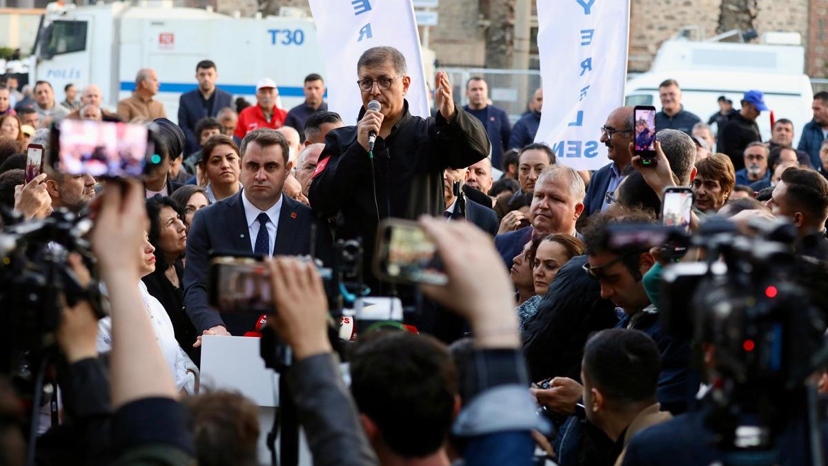İzmir Büyükşehir Belediye Başkanı Cemil Tugay’ın da vatandaşlarla birlikte Meslek Fabrikası önünde nöbet tutmaya başladı.